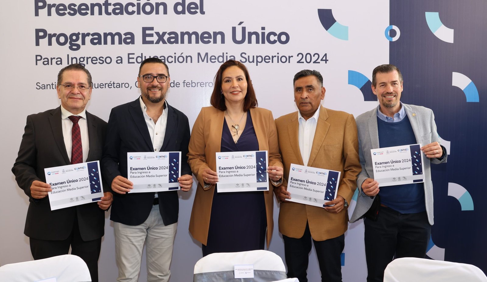 Con la finalidad de impulsar las trayectorias educativas completas de las y los jóvenes en Querétaro, la secretaria de Educación, Martha Elena Soto Obregón, anunció, por octavo año consecutivo, la convocatoria para el Examen Único 2024, estrategia interinstitucional donde participan el Colegio de Bachilleres del Estado de Querétaro (COBAQ), Colegio Nacional de Educación Profesional Técnica (CONALEP) y el Colegio de Estudios Científicos y Tecnológicos del Estado de Querétaro (CECyTEQ).