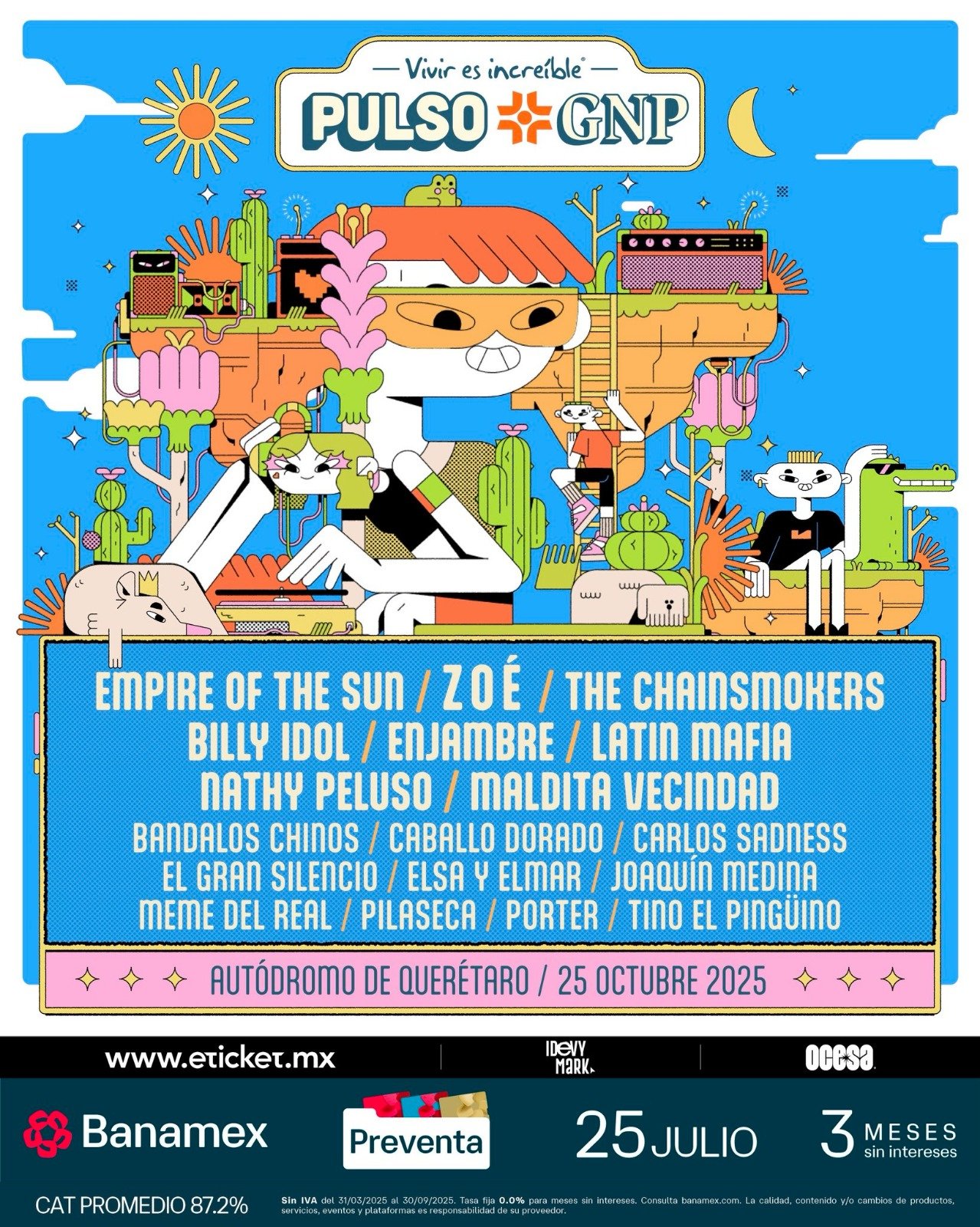 El lineup confirmado incluye a Empire of the Sun, Zoé, The Chainsmokers, Billy Idol, Enjambre y Latin Mafia, entre otros, combinando talentos nacionales e internacionales.