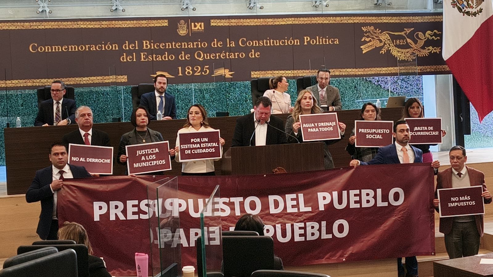 “Vienen también aquí la ley de ingresos de los municipios, sin embargo, no a contar con el total del presupuesto de ingresos del Estado y el cual también se tiene que ver para cuestión de posturas y de cuál es la palabra técnica específica, la proyecciones, necesitamos mandarlas de nuevo todo el paquete a que se revisa en la comisión de presupuesto nuevamente y a través de diálogo y por supuesto donde buscábamos nosotros de tiempo antes la participación a través del equilibrio en las comisiones y el día de hoy avanzamos también esto en el primer punto, pues podamos ya estar generando un presupuesto que sea mucho más eh equitativo, mucho más justo para toda la sociedad queretana y cuando me refiero a toda la sociedad queretana me refiero a los 18 municipios y a todas las zonas del estado, no únicamente de la zona metropolitana”.