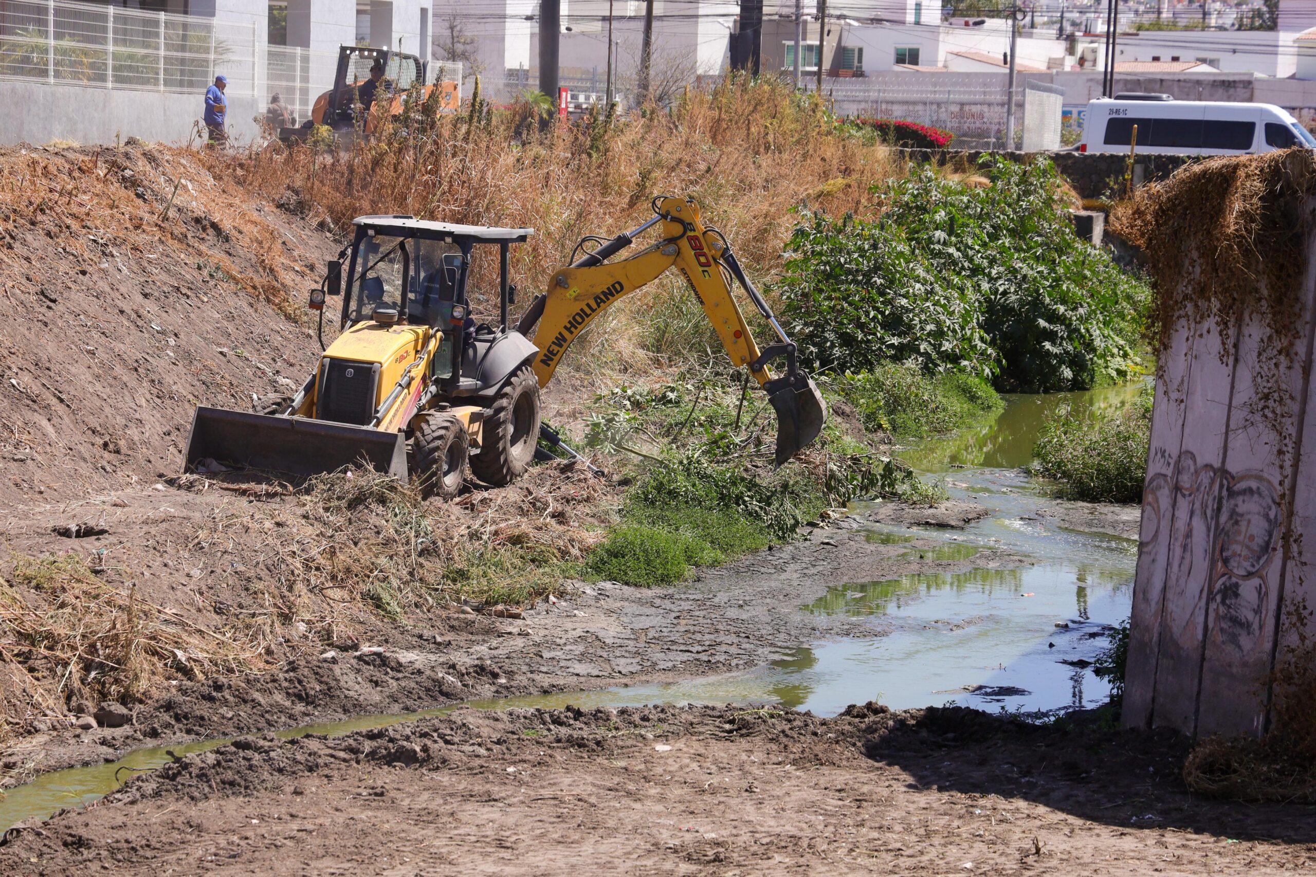 Como parte de estas acciones, personal de la Secretaría de Servicios Públicos realiza la limpieza y desazolve de drenes pluviales, poda baja en los drenes y el retiro de tierra y residuos acumulados en los canales, ya que estos pueden obstruir el flujo del agua.