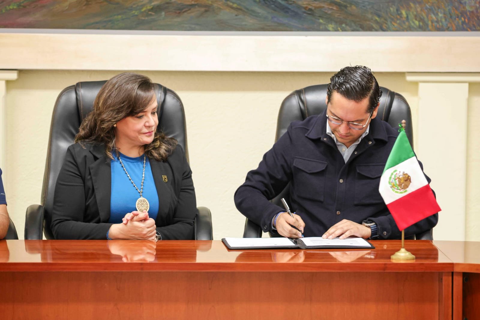 El presidente municipal de Corregidora, Chepe Guerrero, y la rectora de la Universidad Autónoma de Querétaro (UAQ), Silvia Amaya Llano, llevaron a cabo la firma de un convenio de colaboración, con el objetivo de desarrollar en conjunto proyectos y acciones artísticas y culturales en la demarcación por medio de la Facultad de Artes.