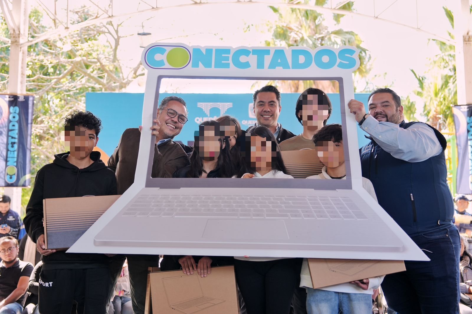 El presidente municipal de Querétaro, Felifer Macías, entregó más de mil computadoras portátiles a estudiantes y emprendedores de la delegación Santa Rosa Jáuregui, a través del programa “Conectados”, que implementa la Secretaría de Desarrollo Social.