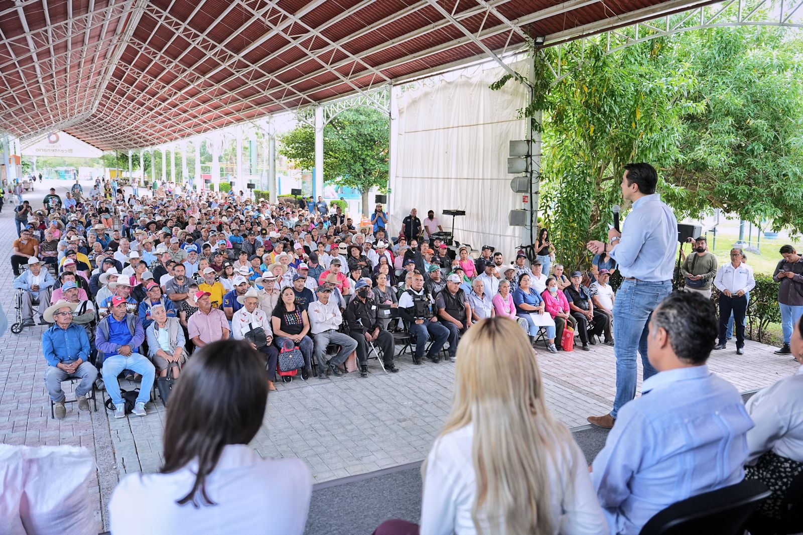 “Como nunca antes, estamos trabajando cerca de ustedes, haciendo presencia con ustedes y dando así apoyos y resultados concretos que les tiene que hacer un poquito mejor, un poquito más fácil todos los retos y problemas con que se enfrentan. Y que estamos trabajando para poner orden en Querétaro, emparejar la cancha y que haya igualdad de oportunidades para todos”.