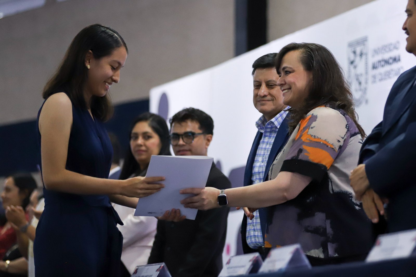 La Rectora distinguió a 146 egresadas y egresados que alcanzaron los promedios más altos de sus respectivas generaciones; 33 de ellos, dijo, recibieron la Medalla al Mérito Académico y 113 el reconocimiento por su alto desempeño. En su mensaje, destacó que la historia que forjaron a lo largo de su paso por las aulas universitarias tiene en común la responsabilidad y la profunda dedicación a instruirse y dar lo mejor de sí.