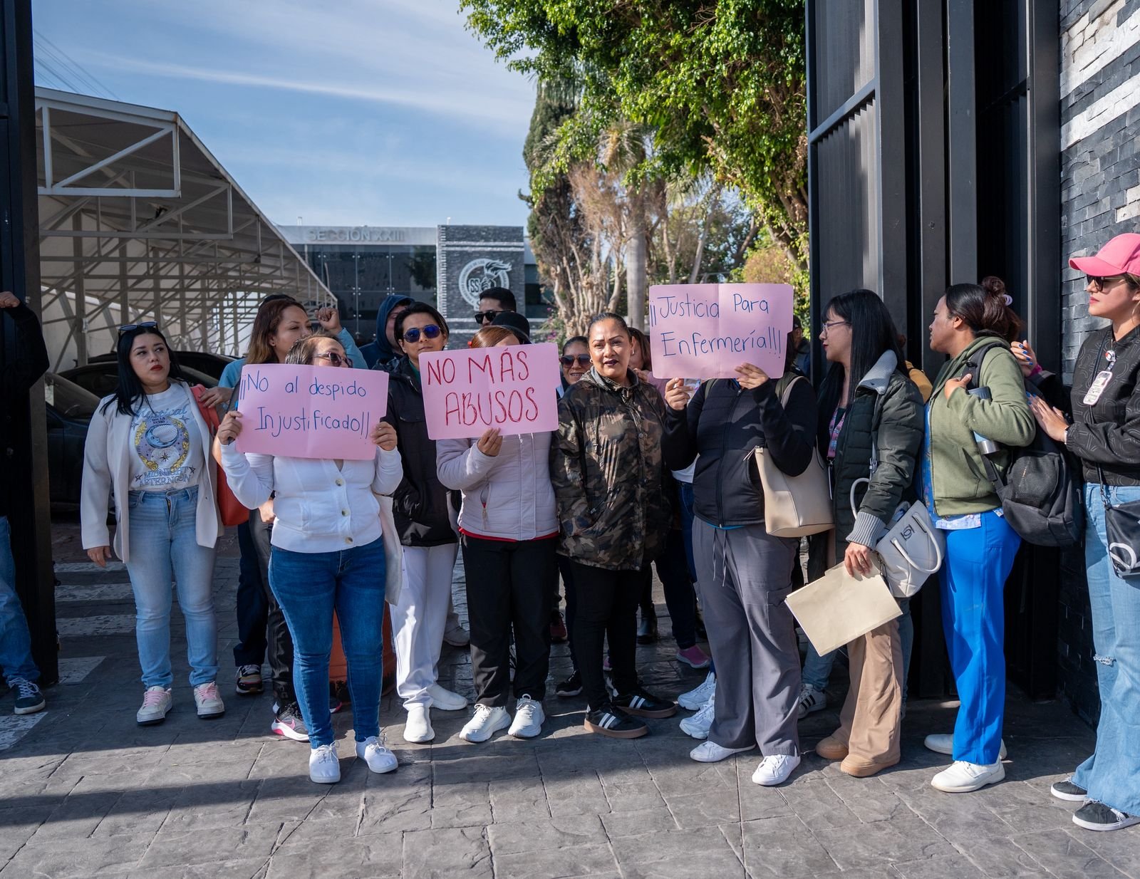 Personal de enfermería de los hospitales generales 1 y 2 del IMSS en Querétaro se manifestaron a las afueras de la sección XXIII del sindicato, pues señalan que están siendo reprimidos por personal de jefaturas para cubrir turnos extra, sin pago, debido a que desde el año pasado ya no se le renovó el contrato al personal eventual.