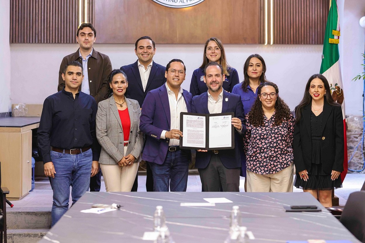 El alcalde de Corregidora, Josué Guerrero Trápala, firmó el convenio de colaboración entre el Gobierno Municipal de Corregidora y el Instituto Registral y Catastral del Estado de Querétaro, con el objetivo de consolidar una base de datos confiable y actualizada que mejore la identificación y el registro de predios en la demarcación.