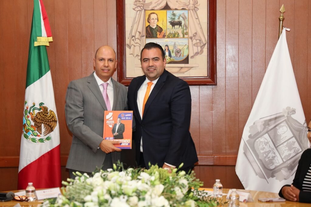 Colón, Qro., 26 de septiembre de 2025.- En cumplimiento con el ordenamiento legal del H. Ayuntamiento, el presidente Municipal, Gaspar Trueba Moncada, entregó al secretario del Ayuntamiento, Juan Carlos Oceguera Mendoza, el Primer Informe del estado que guarda la Administración Pública Municipal.