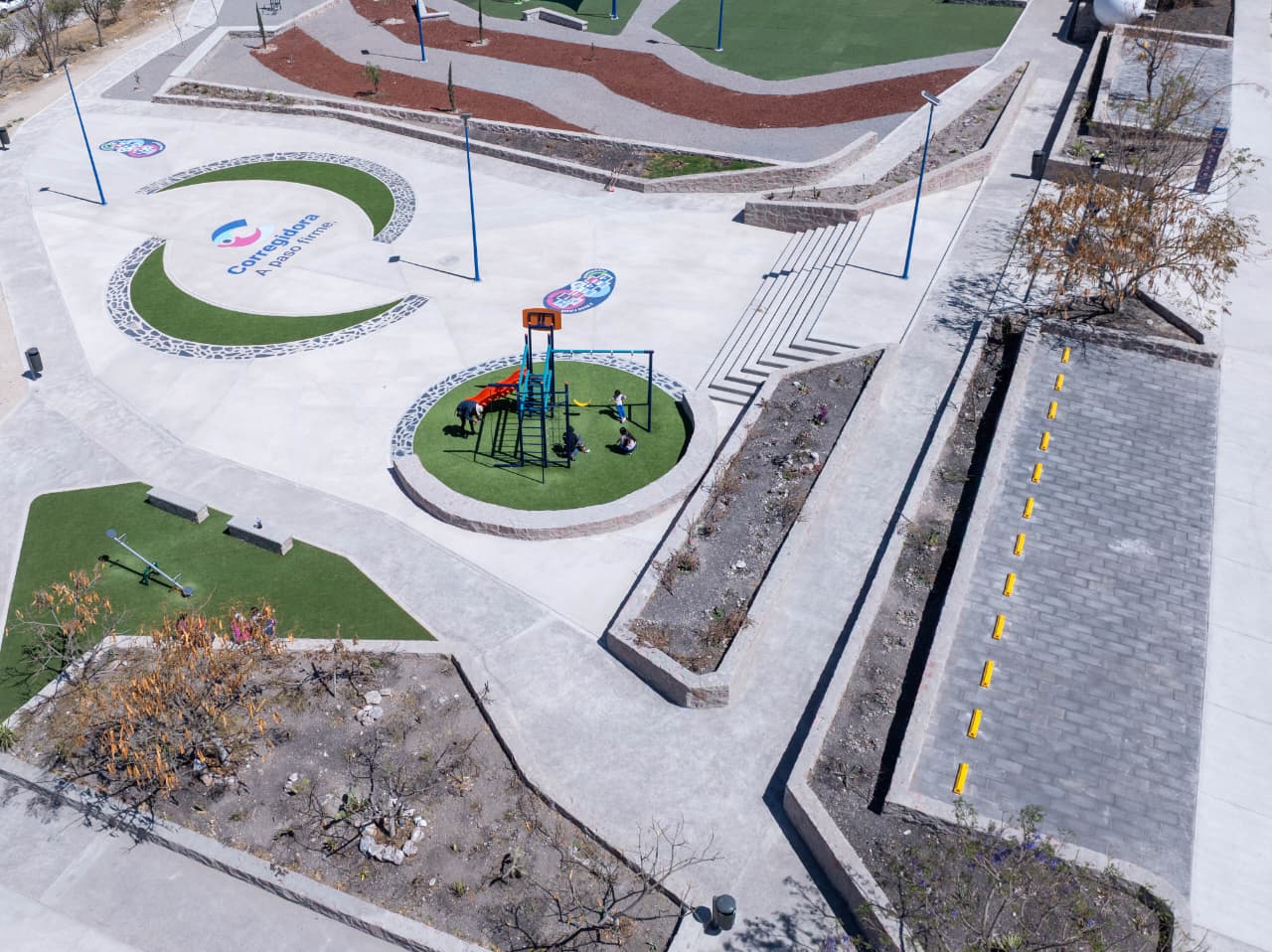 La secretaria de Obras Públicas del Municipio de Corregidora, Viridiana Nava, detalló que se realizó el equipamiento y construcción de espacios de integración social en el área verde con la que cuenta la colonia, con la instalación de una plazuela, área de esparcimiento infantil, área de ejercicio al aire libre y una zona para convivencia social. Asimismo, se colocaron luminarias y una velaria, además de la construcción de un estacionamiento.