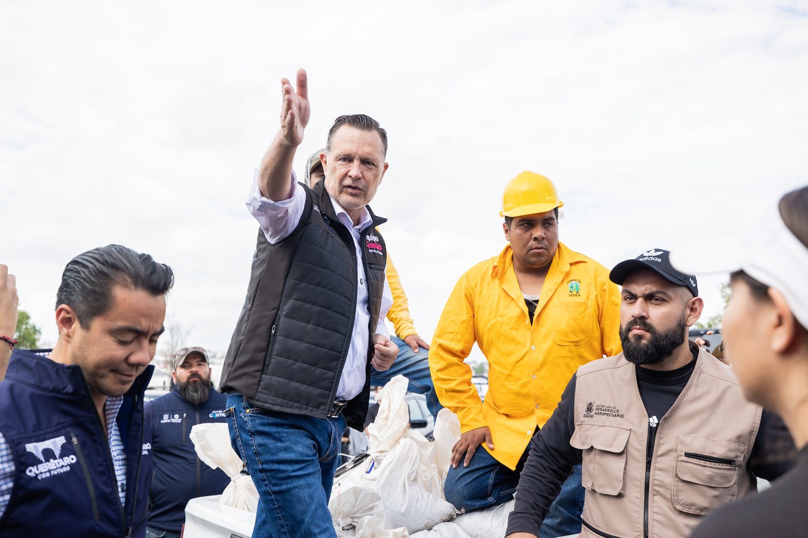 Posteriormente acudió al Estadio Corregidora, donde el mandatario estatal atestiguó las labores realizadas por brigadistas voluntarios y de gobierno para el llenado y traslado de costaleras.