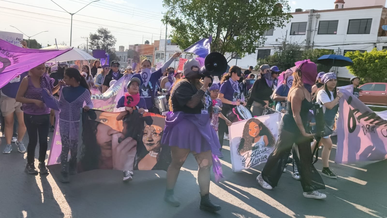 Un grupo de entre 25 y 30 mujeres, todas vestidas de negro y encapuchadas, realizaron diversos destrozos y daños a mupis, estaciones de Qrobús y a diversos inmuebles del centro histórico.