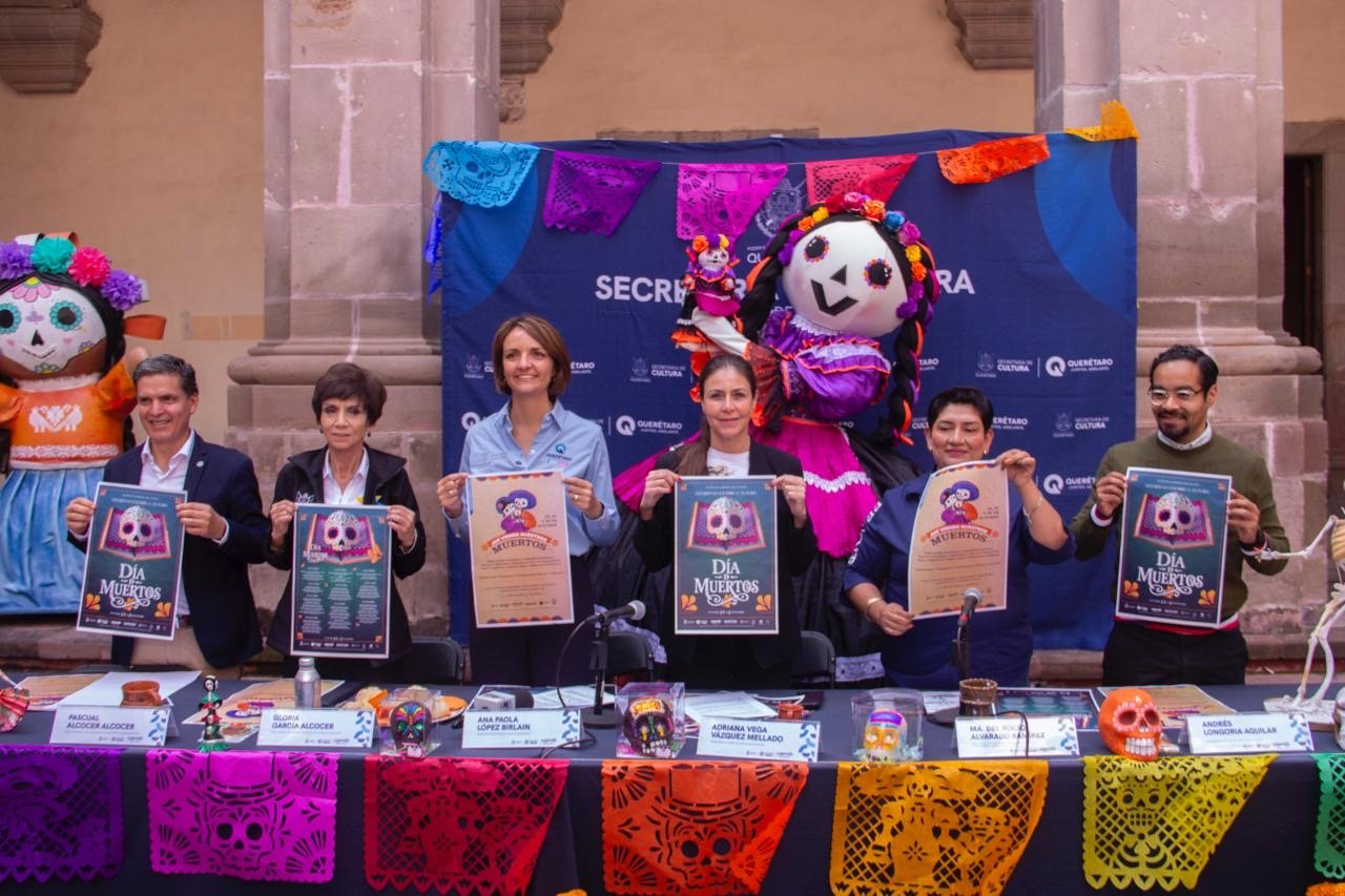 La programación de las actividades con motivo del Día de Muertos puede consultarse en las redes sociales de la SECULT, de la SECTUR y del Patronato de las Fiestas del Estado de Querétaro; a la conferencia asistieron la directora del mismo, Gloria García Alcocer, y el subcoordinador de Gestión Operativa de la Unidad de Servicios para la Educación Básica en Querétaro (USEBEQ), Andrés Longoria Aguilar.