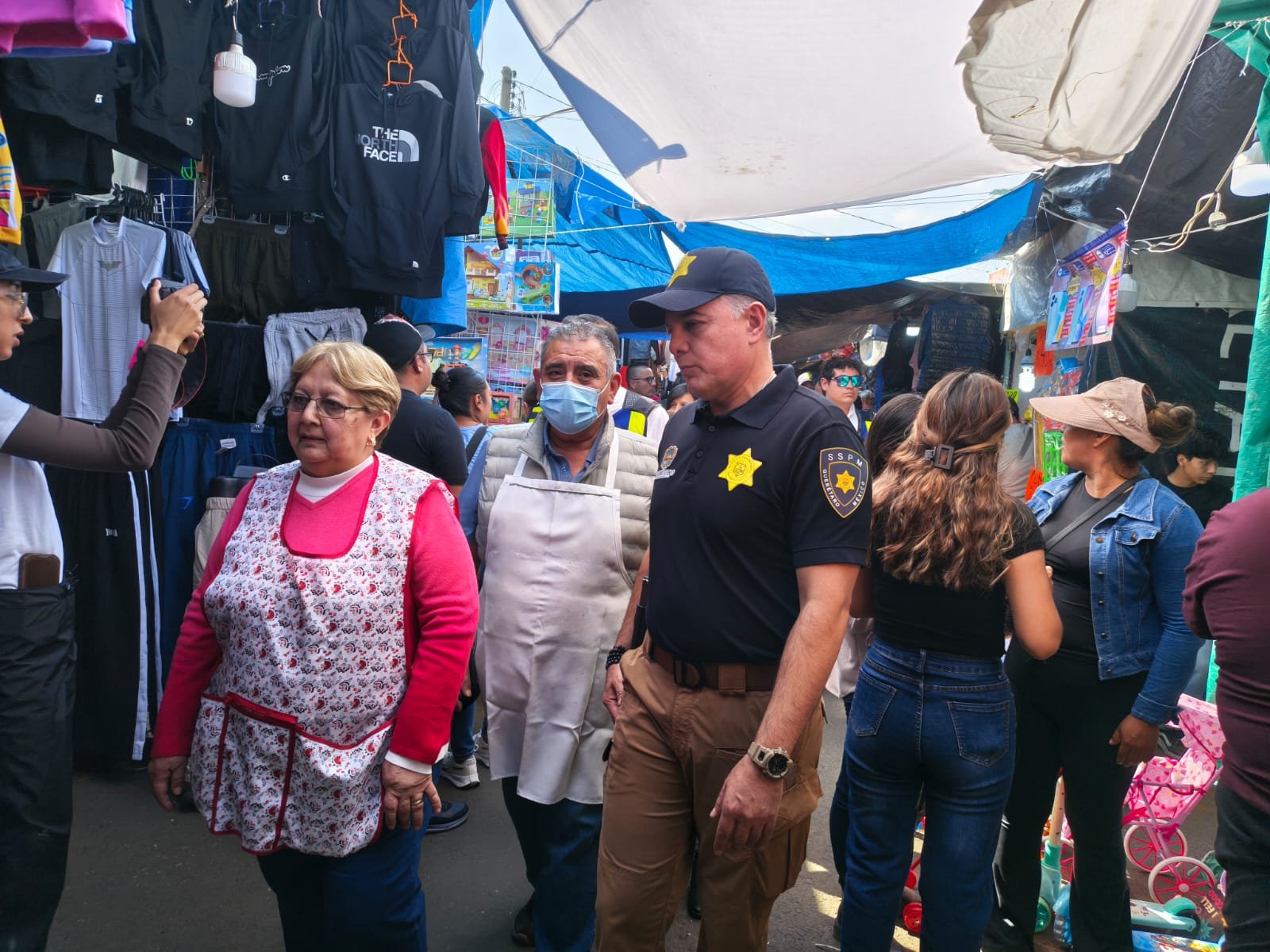Los titulares de la Secretaría de Seguridad Pública del municipio de Querétaro, Juan Luis Ferusca Ortiz y de Protección Civil, Francisco Ramírez Santana, recorrieron los tianguis y mercados del municipio de Querétaro en la víspera del Día de Reyes.