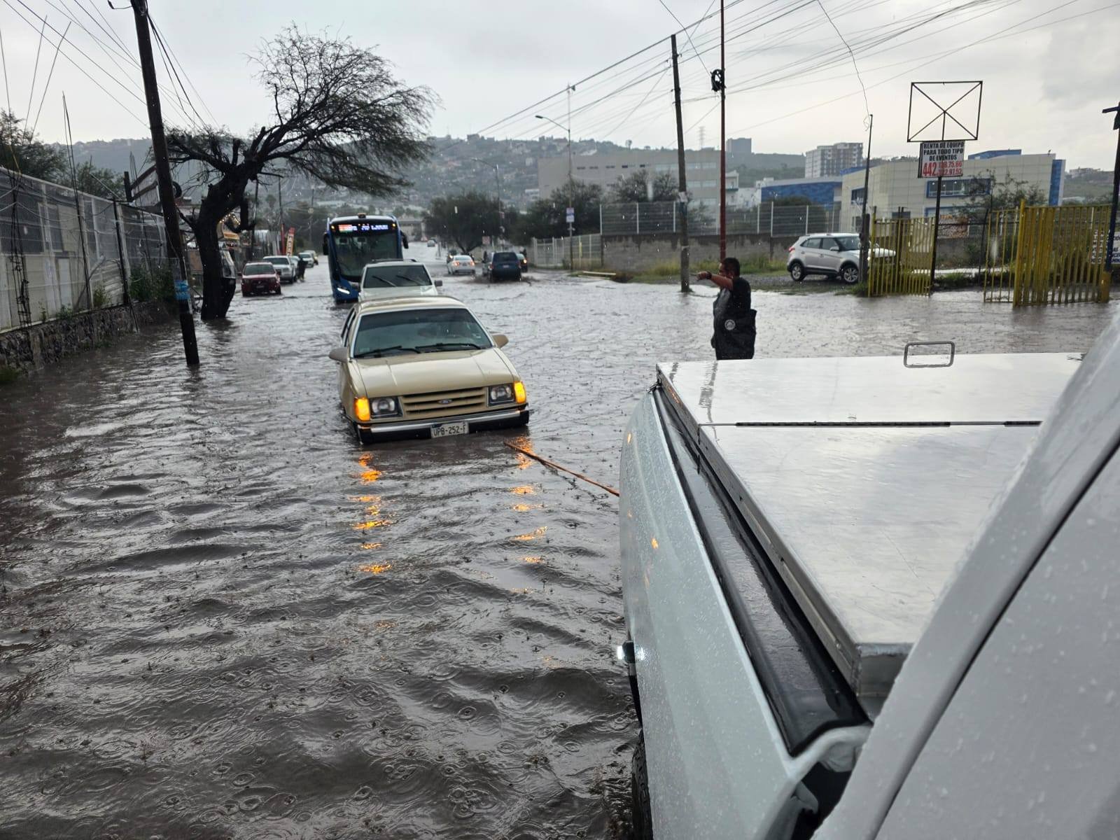 “Está controlado, realmente lo que tuvimos fue mucho aumento del tirante de niveles sobre vialidades que eso como fue mucha cantidad en pocos minutos eso nos pone en complicaciones en tema de las vialidades, afortunadamente en apoyo con seguridad pública y nuestras unidades pudimos sacar los vehículos de esos encharcamientos, tenemos pronostico de lluvias toda la semana”.