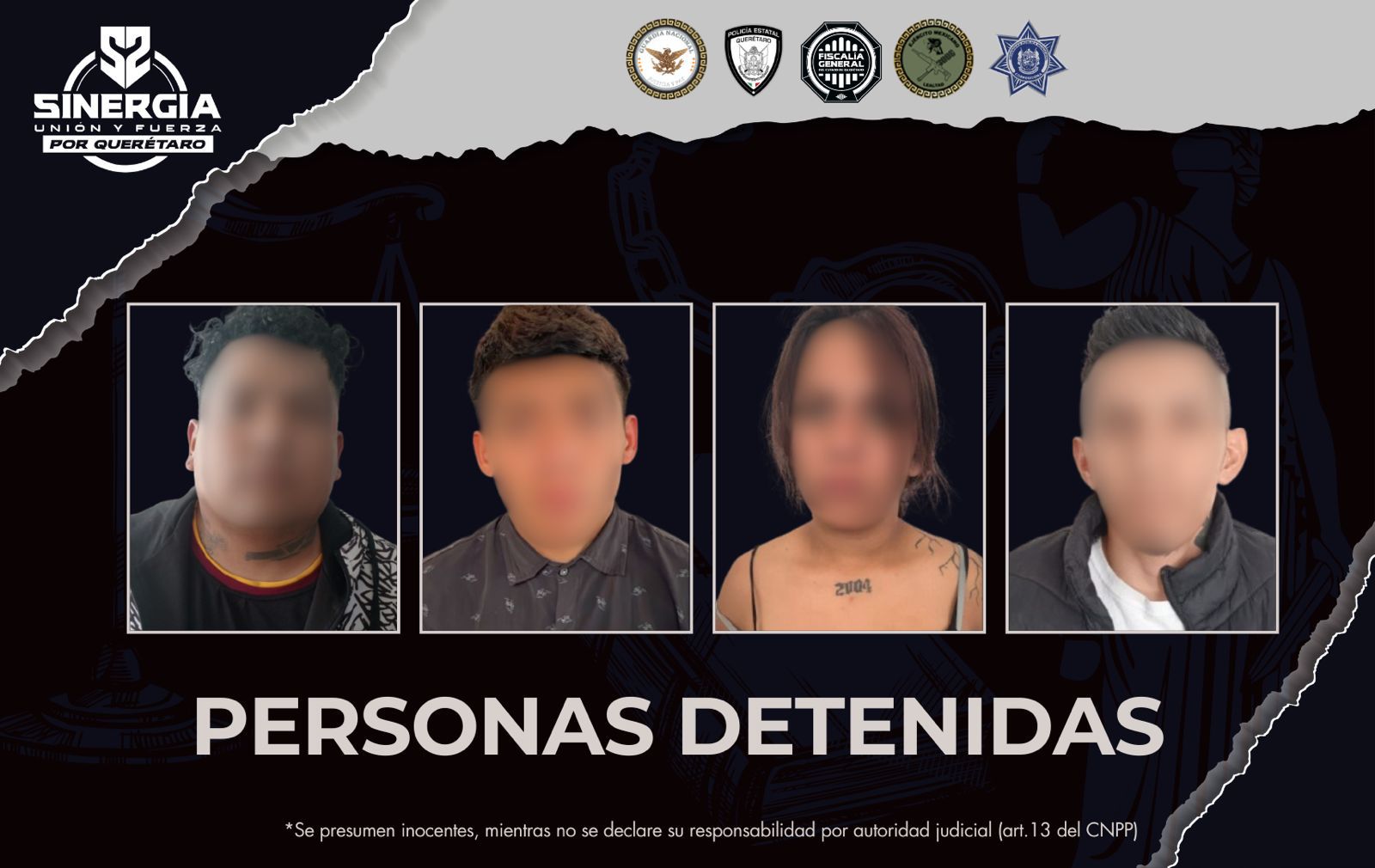 Como resultado de estas acciones, se logró la detención de cuatro personas, así como el aseguramiento de un inmueble y un vehículo relacionados con los hechos investigados, fortaleciendo las líneas de investigación en curso.