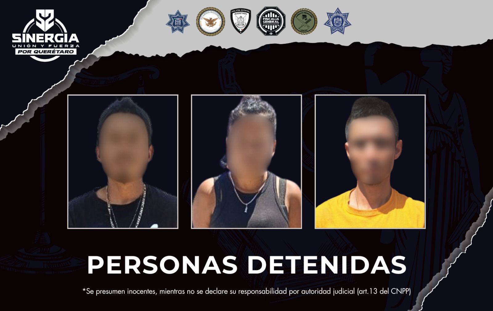 Como resultado de estos operativos, fueron detenidas tres personas, además del aseguramiento de dosis de distintas drogas, así como de artefactos presuntamente utilizados para su dosificación.